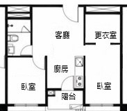 2房/ 1廳/ 1衛/ 1陽台